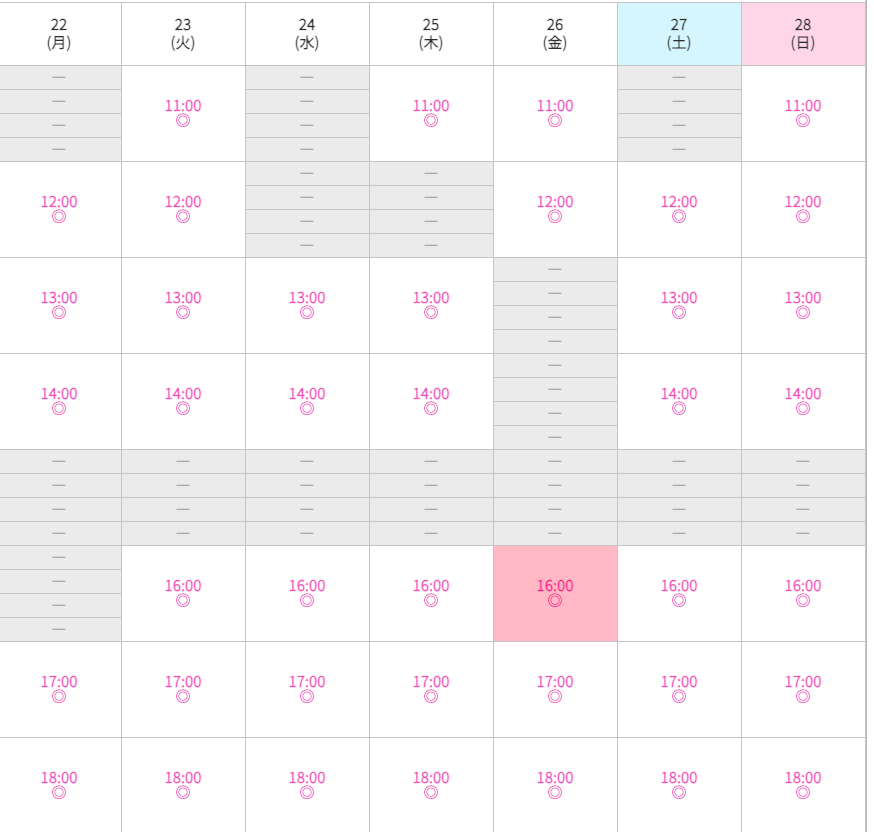 無料カウンセリングの予約は比較的とりやすく、土日でも比較的空いている日が多いです。