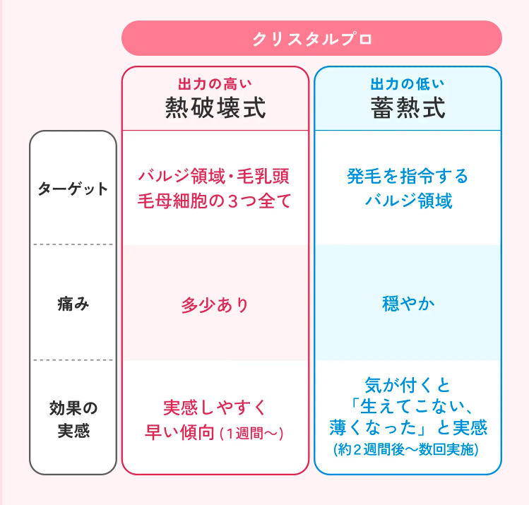 太い毛、細い毛、毛質に合わせた方式でレーザー照射をしてもらえるため、効果的に脱毛できるので安心できます。