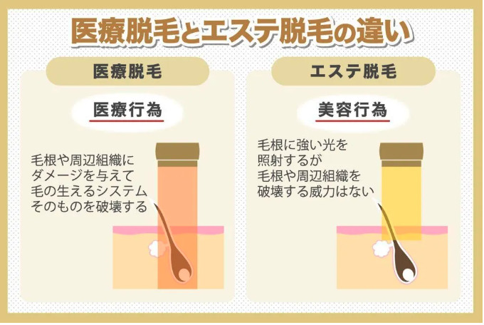 - 7 【違いを解説】医療脱毛とエステ脱毛(光脱毛)の違いは永久脱毛かどうか
