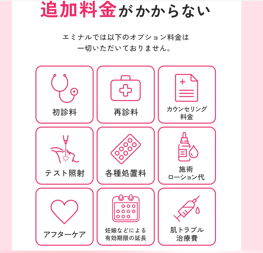 エミナルクリニックは無料オプションもたくさんあるため安心して通うことができます。