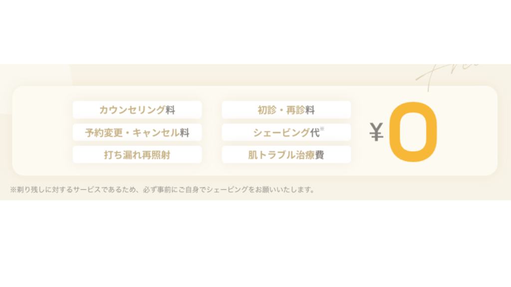 通常、剃り残しに関しては1部位1000円程度かかりますが、リゼクリニックはシェービング代も無料です。